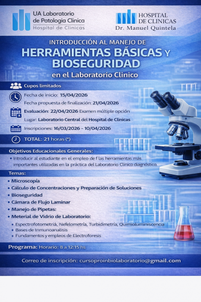 - "Introducción al manejo de herramientas y bioseguridad en laboratorio clínico"